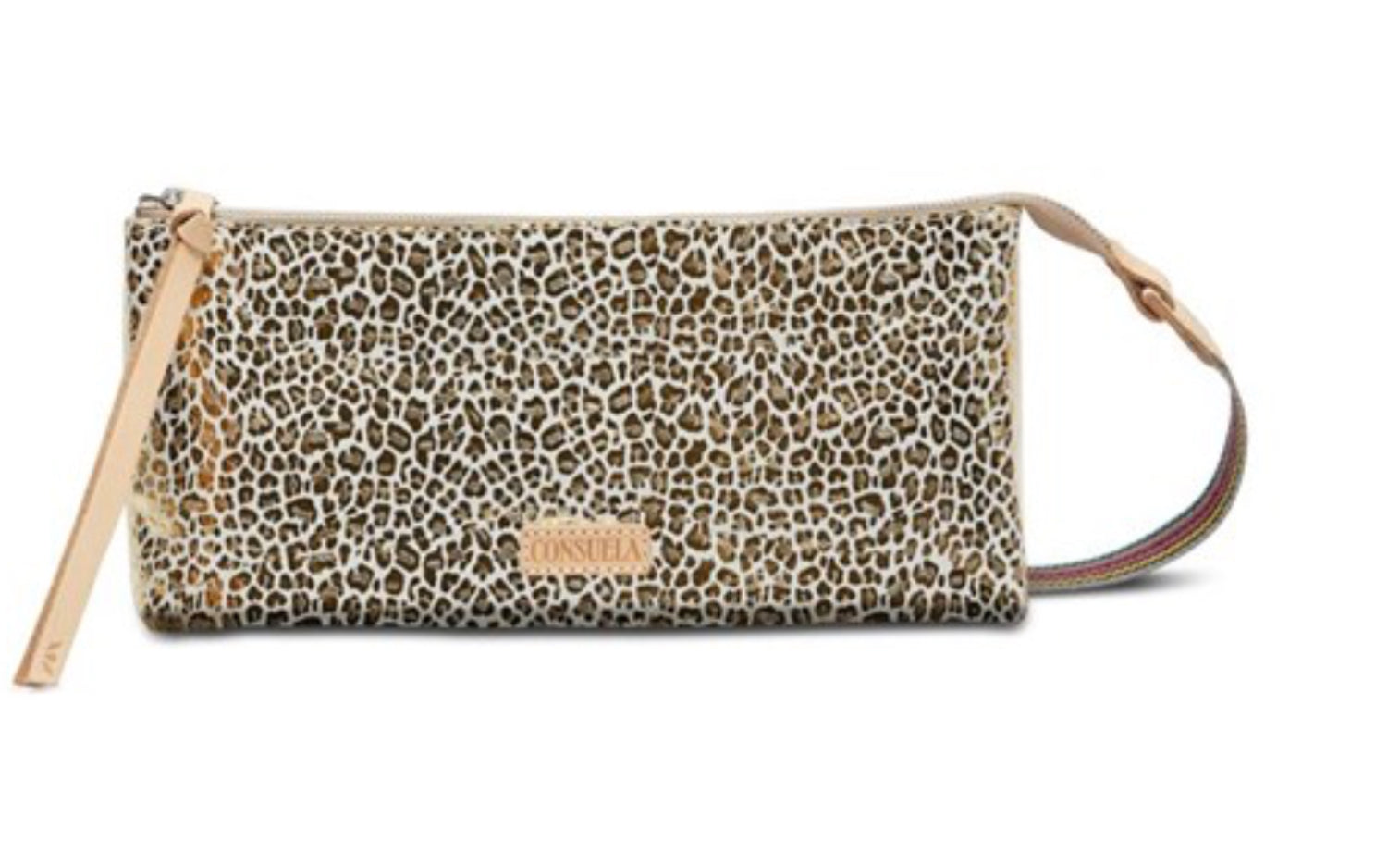 Description: Our Tool Bag is ideal for organizing cosmetics, pencils, and art supplies inside a larger tote. It also serves as a versatile day to evening clutch! Our tool bag features our Sally tooled leather exterior and a woven handle. Zipper closure and interior slide pocket with a colorful woven handle.