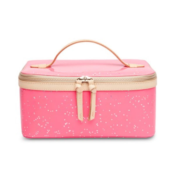 Description: Time for a tripxThis darling train case is perfect for keeping all of your makeup brushes, serums, and more organized for your next adventure!