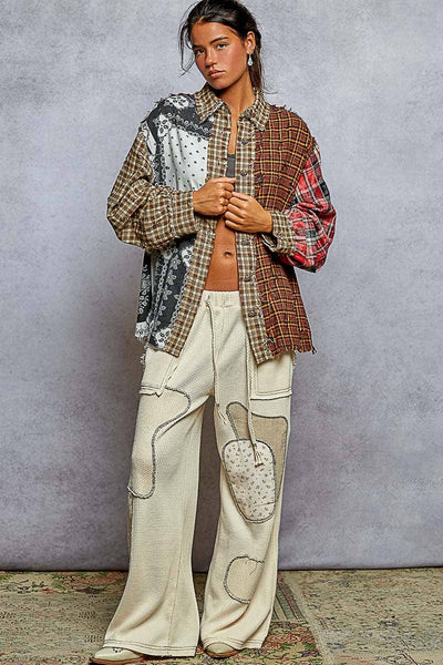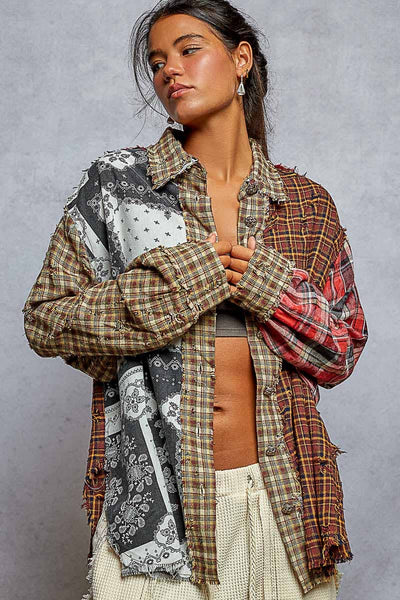 Designed in balloon sleeve oversized fit shirt in plaid. Specs/Dimensions: - BUST: 27-1/2" - LENGTH (Front and Back): 28" - SLEEVE: 23" - SHOULDER: 18-1/2"