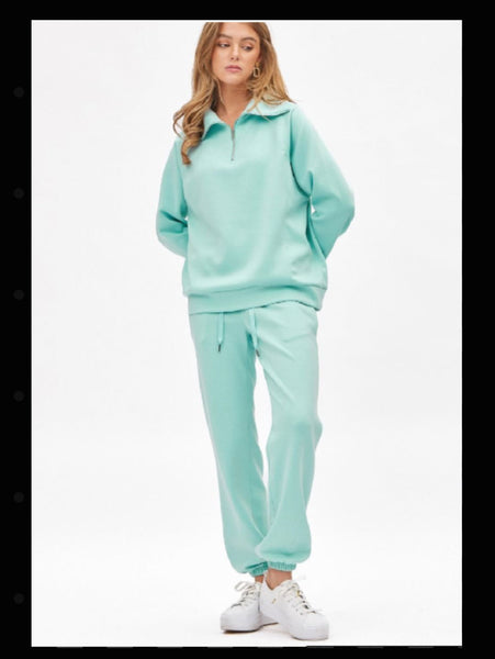 Say hello to our dreamy half-zip pullover, made from the softest modal fabric you’ll ever wear! Designed with banded sleeves and hem, it’s the perfect blend of comfort and effortless style. This set also comes with the perfect jogger pants to complete the look! Made for life on the go, this wrinkle-resistant pullover is your ultimate travel companion—just toss it in your bag and pull it out looking crisp and ready to wear. The versatile half-zip design lets you customize your look and comfort, while the luxurious modal fabric ensures you’ll feel as good as you look. Whether you’re jet-setting or lounging, this set makes styling a breeze! • Inseam: 28' 5/8" • Model is 5’8” and wearing size Small