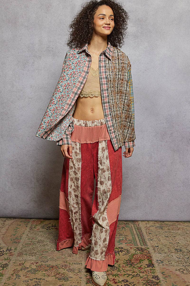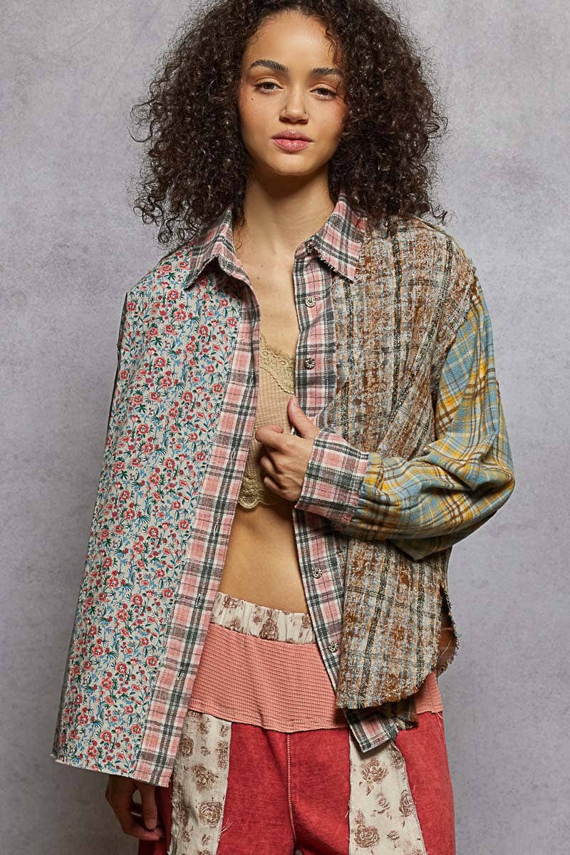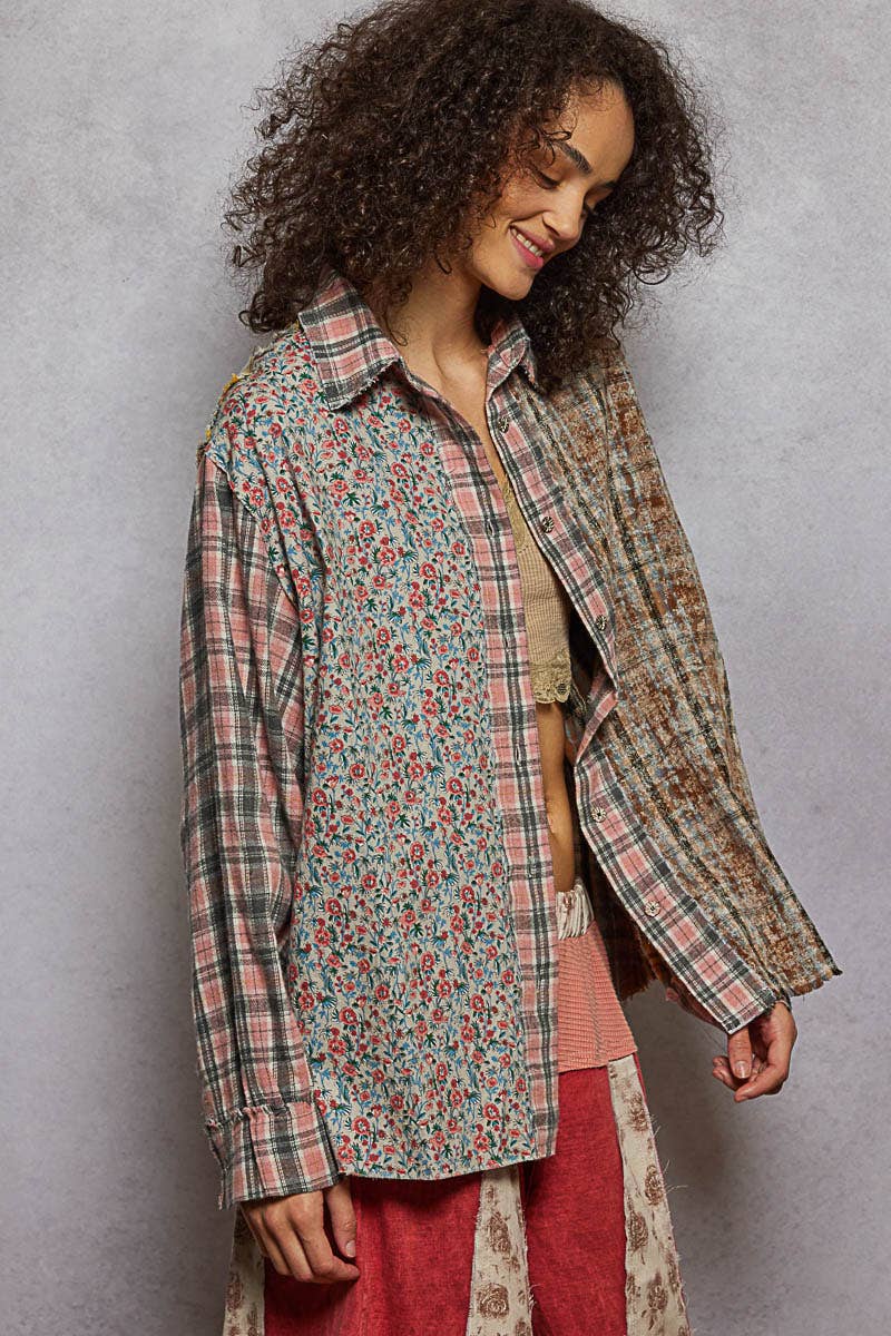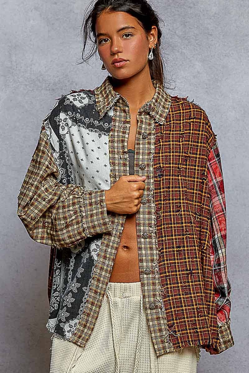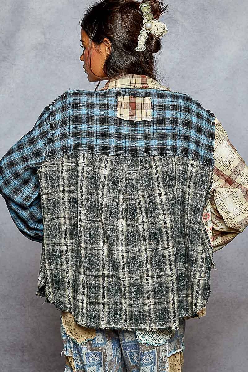 Designed in balloon sleeve oversized fit shirt in plaid. Specs/Dimensions: - BUST: 27-1/2" - LENGTH (Front and Back): 28" - SLEEVE: 23" - SHOULDER: 18-1/2"