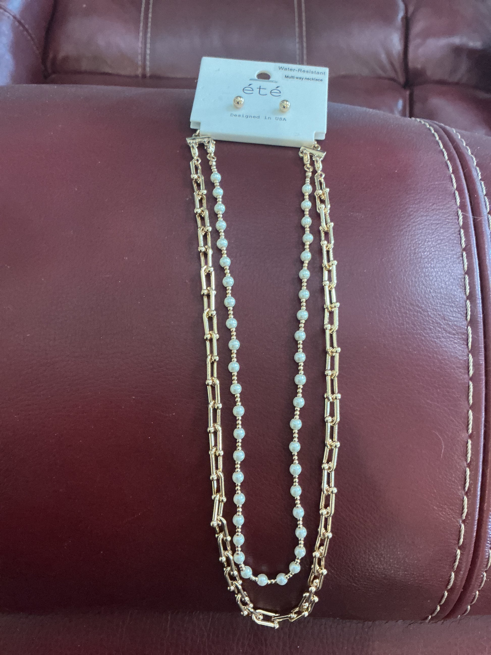 Beautiful gold chain and pearl beaded necklace with stud earrings