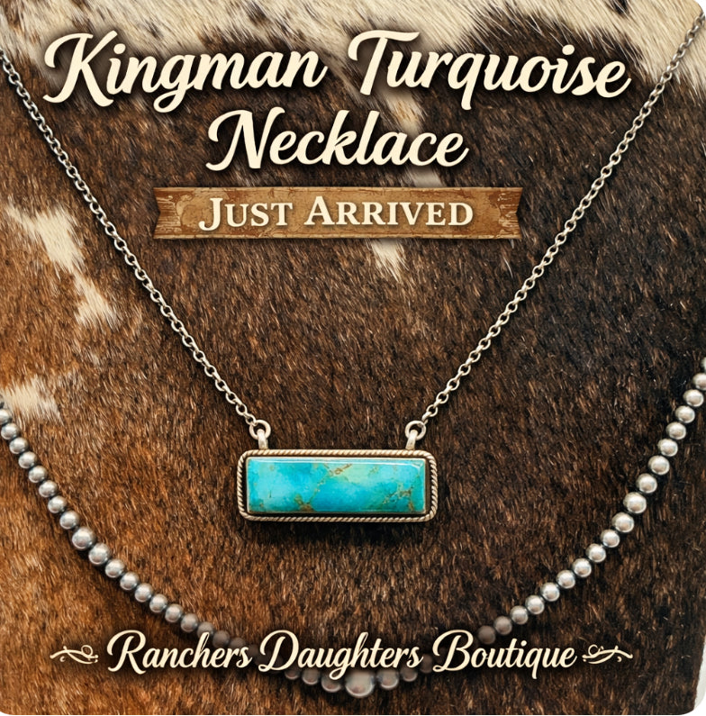 Add a timeless piece of the Southwest to your jewelry collection with this beautiful Kingman turquoise necklace. Featuring a natural turquoise stone set in sterling silver, each piece showcases the vibrant blue-green color and unique matrix that Kingman turquoise is known for.