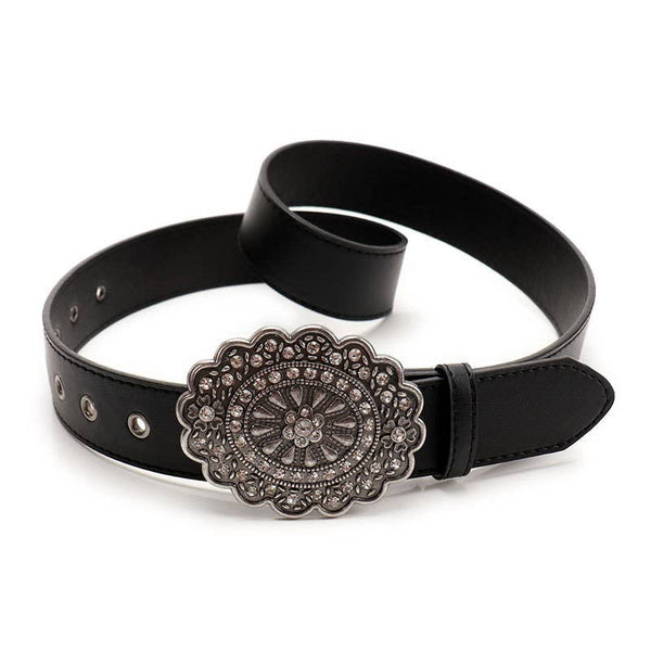 Western Oval Buckle Fashion Leather Belt features a sleek, vintage-inspired oval buckle paired with a high-quality faux leather strap. Designed to add bold character to jeans, dresses, or skirts, it is the perfect statement accessory for casual days or dressed-up nights. Timeless, versatile, and effortlessly cool.