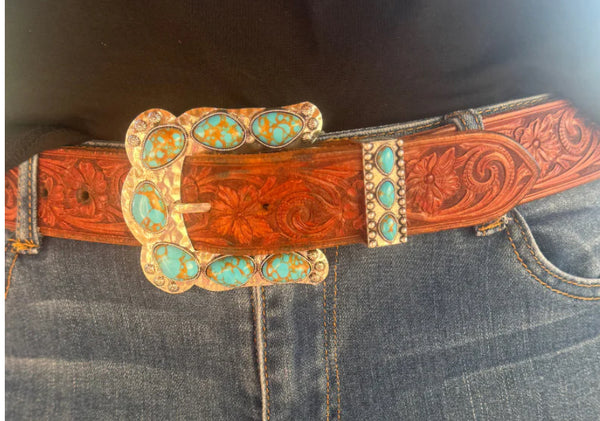 Buckle up and add a touch of cuteness to your outfit with our adorable Buckle Up Belt Buckle! Featuring fun and eye-catching turquoise stones, this belt buckle is sure to make a statement. Don't miss out on this stylish and unique accessory!