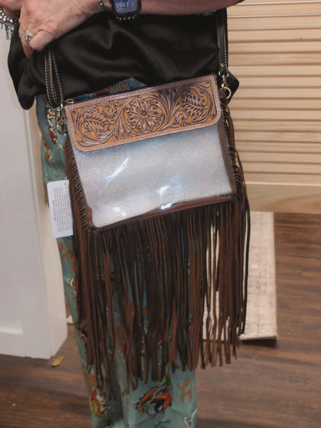 Finally some cute stadium/ venue approved clear crossbody bags!!! - genuine hair-on cowhide - clear thick vinyl - secure snap closure - Adjustable crossbody strap - 9.5" W x 8.5" H - meets venue clear bag policy/ regulations