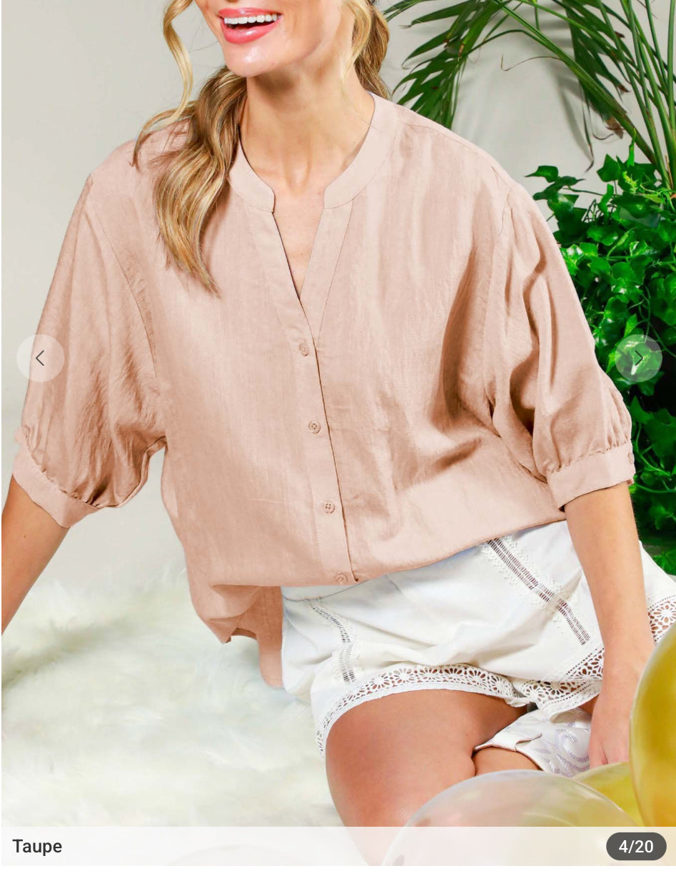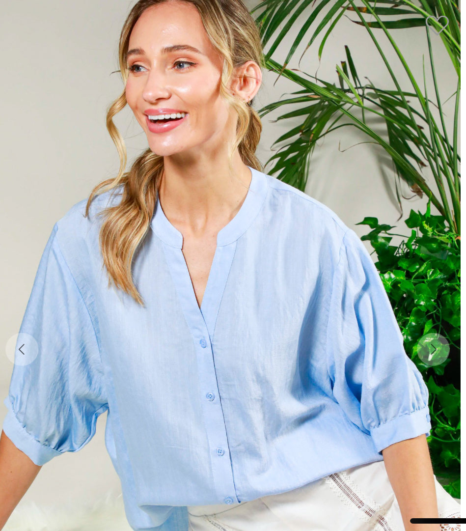 SHORT PUFF SLEEVE BACK BUTTON DETAIL SHIRT TOP
