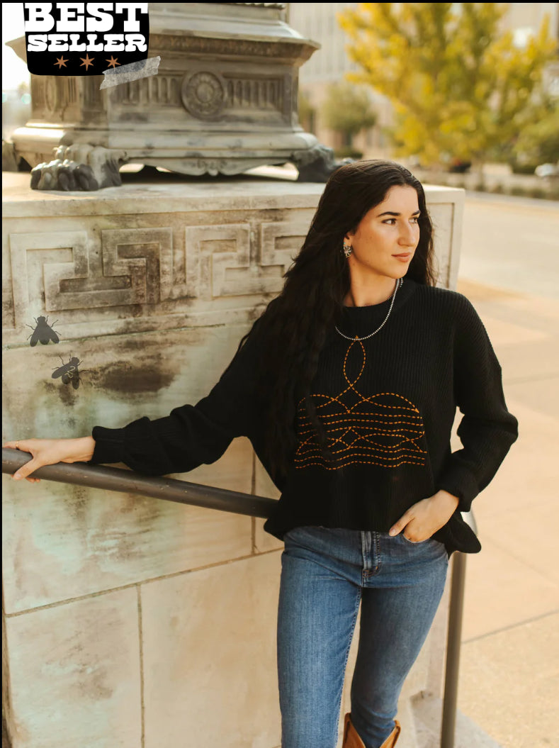what's better than a chunky knit? one with embroidered boot stitch... idk what else to say, these should sell themselves. I will tell you these are roomy/oversized for ultimate comfort...