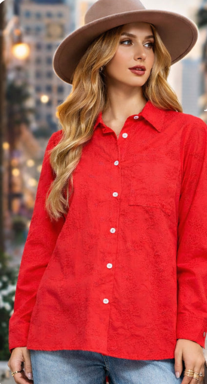 A classic embroidered blouse designed with timeless charm and thoughtful detailing. Crafted from soft, breathable fabric, this blouse features a collared neckline and button placket for a polished yet stylish look