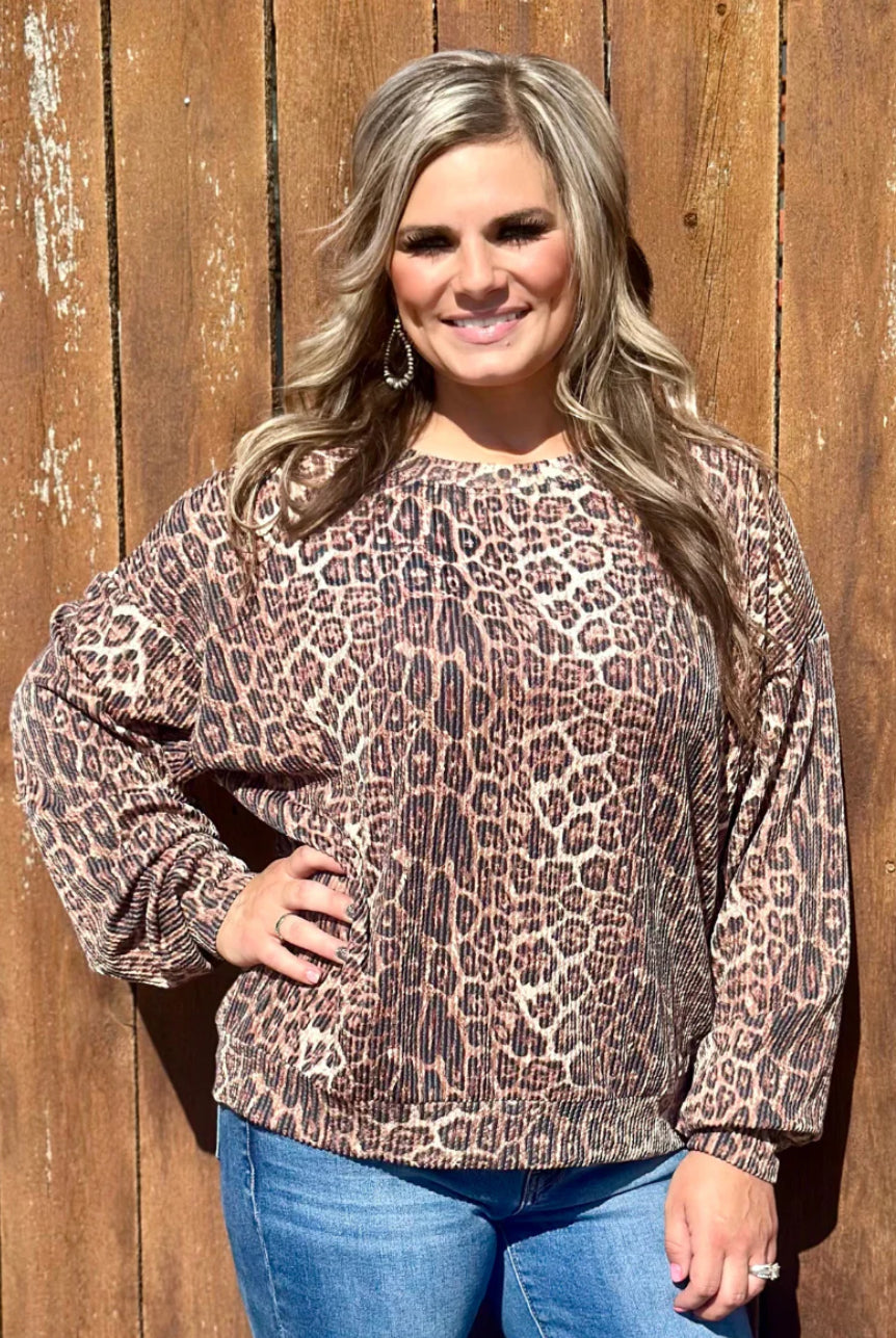 Embrace bold comfort with the Hear Me Roar Sweater Top. This oversized sweater features the viral ribbed material that’s as cozy as it is eye-catching. The cheetah print adds a wild, playful touch to your casual look, making it perfect for lounging or turning heads on the go. Stay stylishly fierce and effortlessly comfy all day long.