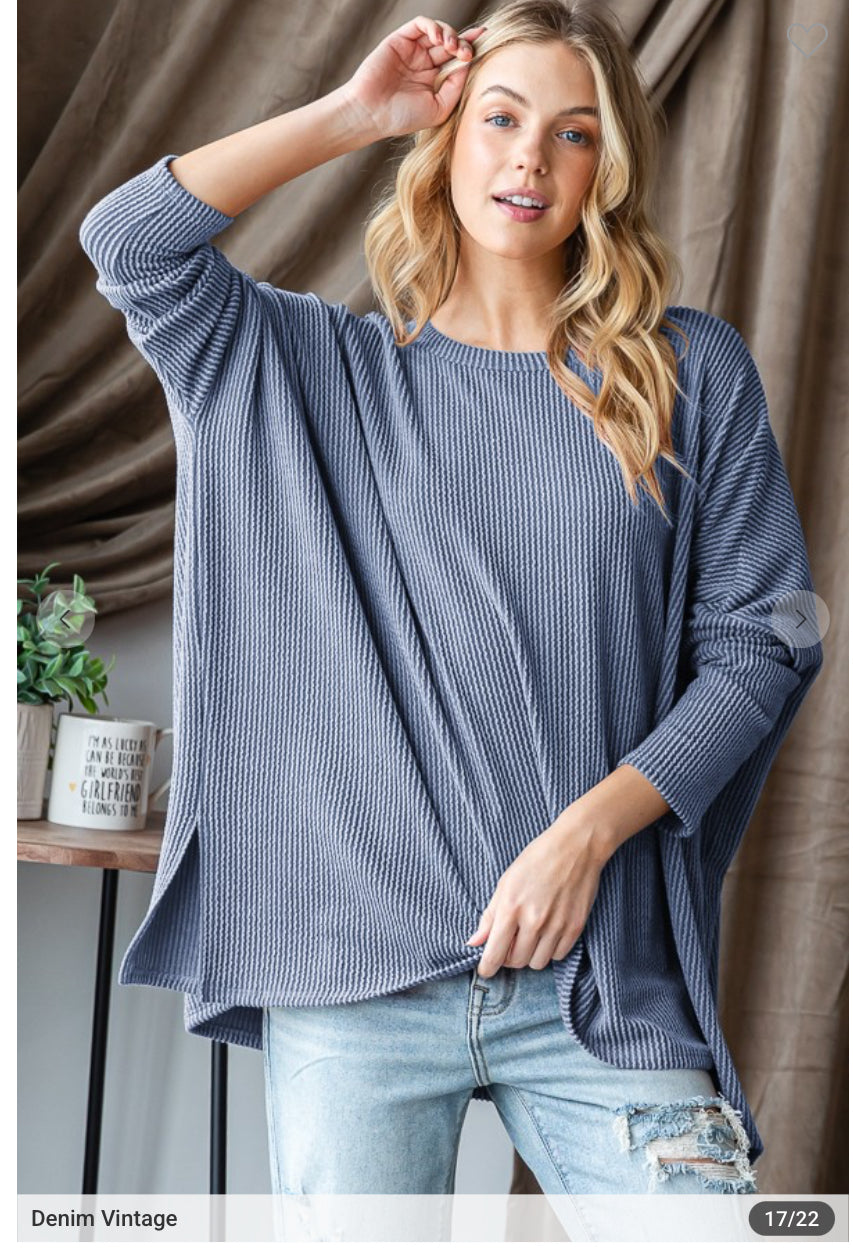 95% POLYESTER 5% SPANDEX LONG SLEEVE ROUND NECK SOLID URBAN RIBBED TOP WITH SIDE SLIT AND DRAPED DETAIL *The garment color may differ slightly upon arrival due to being taken with professional lighting also depending on what device you maybe using to shop*"